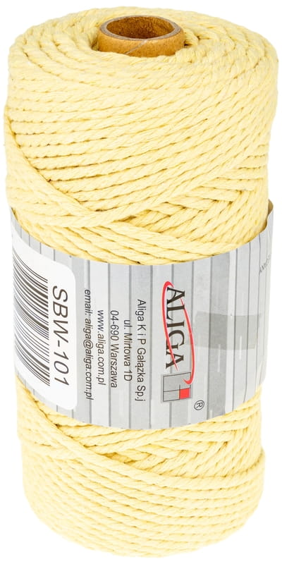 Sznurek bawełniany SBW-101 żółty 3mm x 100m (splot 21 nitek), Aliga