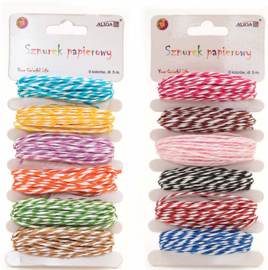 Sznurek papierowy kolorowy przeplatany 12 kolorów x 5 m, Aliga