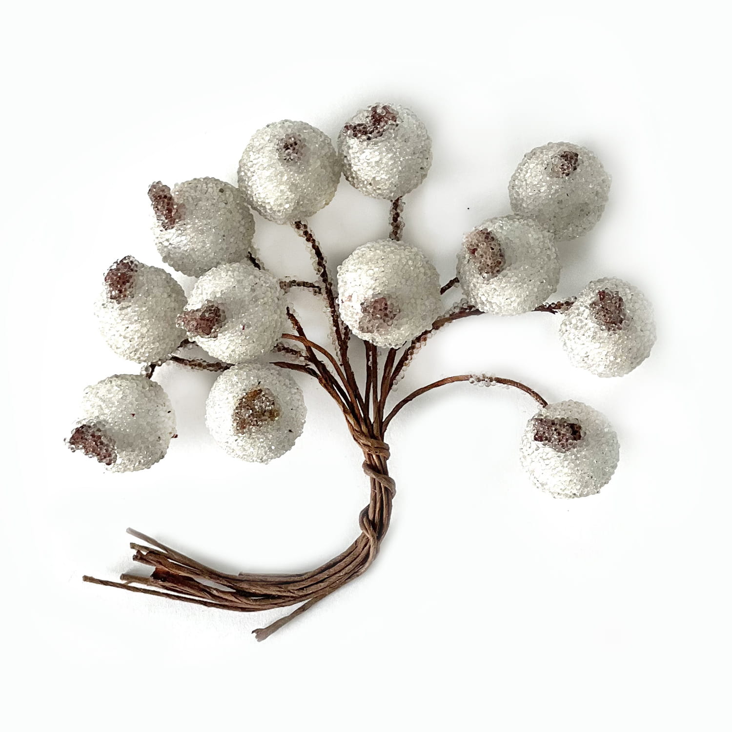 Szronione jagody białe dekoracyjne 12 sztuk, Dp Craft