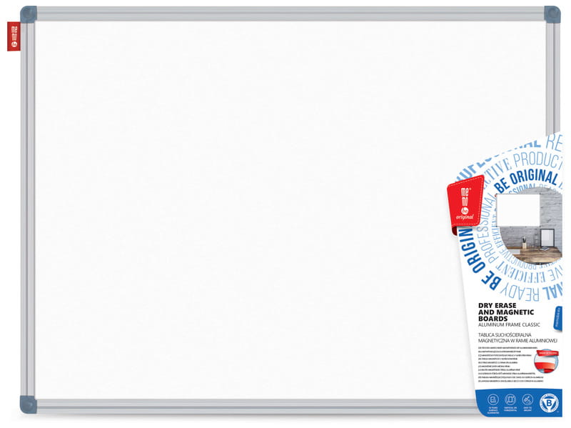 Powierzchnia tablicy wykonana ze stali lakierowanej, suchościeralna magnetyczna. Kolor biały. Tył tablicy - pilśnia. Rama aluminiowa anodowana CLASSIC o szer.18 i grub.16 mm. Tablica o wymiarze 120x90 cm.W zestawie półka aluminiowa, marker oraz komplet wkrętów i kołków rozporowych. Montaż tablicy w pionie lub poziomie w czterech rogach. Narożniki w kolorze popielatym. Tablica przeznaczona do pisania markerami oraz zawieszania kartek za pomocą magnesów. Tablice magnetyczne znalazły swoje trwałe miejsce w codziennym ich zastosowaniu. Doskonale sprawdzają się zarówno w biurze, jak i w szkole i w domu. Do regularnego czyszczenia i konserwacji powierzchni tablicy, polecamy płyn do tablic suchościeralnych Memoboards. Okres gwarancji na powierzchnię tablicy - 10 lat.