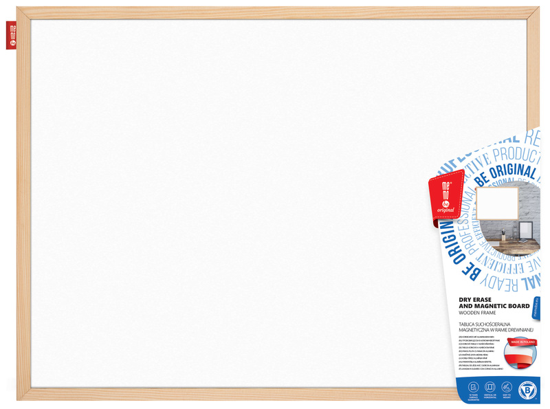 Powierzchnia tablicy wykonana ze stali lakierowanej, suchościeralna magnetyczna. Kolor biały. Tył tablicy - pilśnia. Rama drewniana sosnowa o szer.16 i grub.14 mm. Tablica o wymiarze 90x60 cm. W zestawie komplet gwoździków i haczyków. Montaż tablicy w pionie lub poziomie. Wzmocnienia: dodatkowe zszywki z tyłu tablicy. Tablica przeznaczona do pisania markerami oraz zawieszania kartek za pomocą magnesów. Tablice magnetyczne znalazły swoje trwałe miejsce w codziennym ich zastosowaniu. Doskonale sprawdzają się zarówno w biurze, jak i w szkole i w domu. Do regularnego czyszczenia i konserwacji powierzchni tablicy, polecamy płyn do tablic suchościeralnych Memoboards. Okres gwarancji na powierzchnię tablicy - 10 lat.