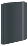 - Jednokolorowa teczka w twardej oprawie w czarnym kolorze.