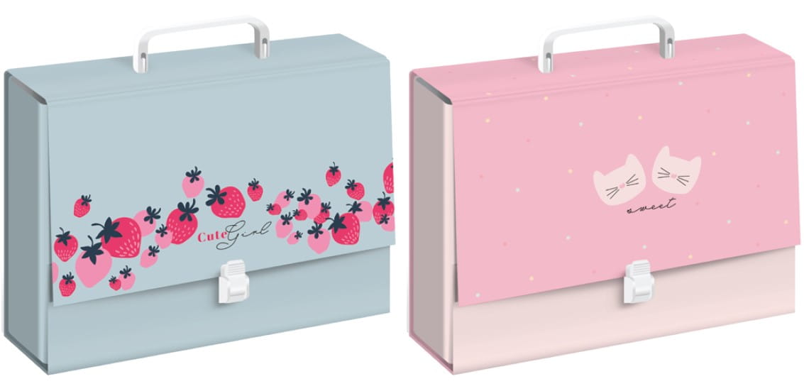 Format: C4. Szerokość: 5 cm. Jednokomorowa teczka z grubej i wytrzymałej tektury. Rączka i zamek wykonane z plastiku. Produkt idealny na bloki, prace plastyczne oraz wszelkie notatki. Szerokie dno pomieści farby i kubek.