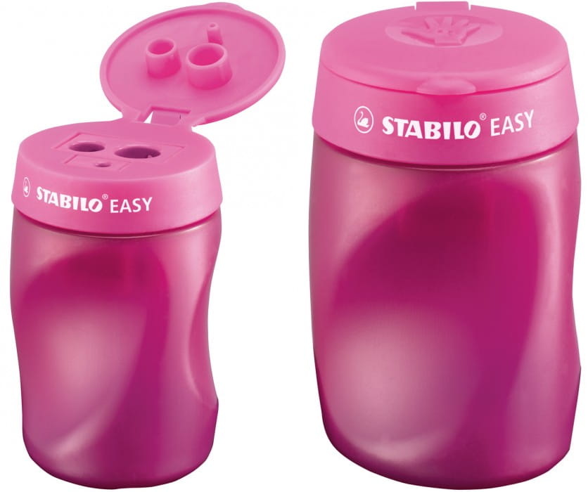 Temperówka STABILO EASYsharpener świetnie współpracuje z wkładami o trzech różnych średnicach. Można nią naostrzyć kredki STABILO EASYcolors, ołówki STABILO EASYgraph i STABILO EASYergo 3,15 oraz wszystkie cienkie ołówki drewniane. Temperówka oferuje ergonomiczny design i wersje dla prawo- i leworęcznych. Wersja dla leworęcznych dostępna jest w kolorach morskim (petrol), różowym i niebieskim. Wersja dla praworęcznych dostępna jest także w tych trzech barwach oraz, dodatkowo, w kolorach pomarańczowym i zielonym. Za funkcjonalnością temperówki i jej wyjątkowym designem stoi troska i naukowe zaplecze. Innowacyjne wypustki sprawiają, że jest wygodna w użytkowaniu i świetnie pasuje do małych rączek. Posiada zamykane wieczko oraz zakrętkę, która zapobiega ewentualnym skaleczeniom. Można ją również podpisać imieniem dziecka.