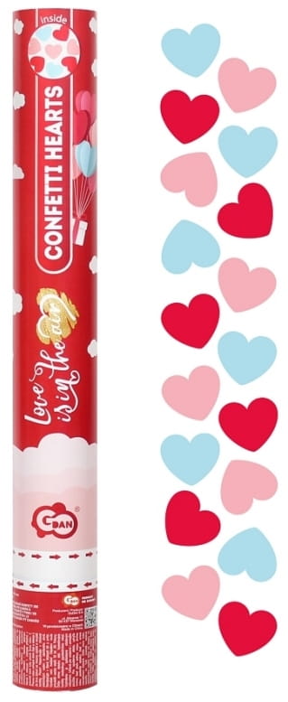Tuba strzelająca konfetti pneumatyczne serca kolorowe Love is in the air 40 cm, Godan