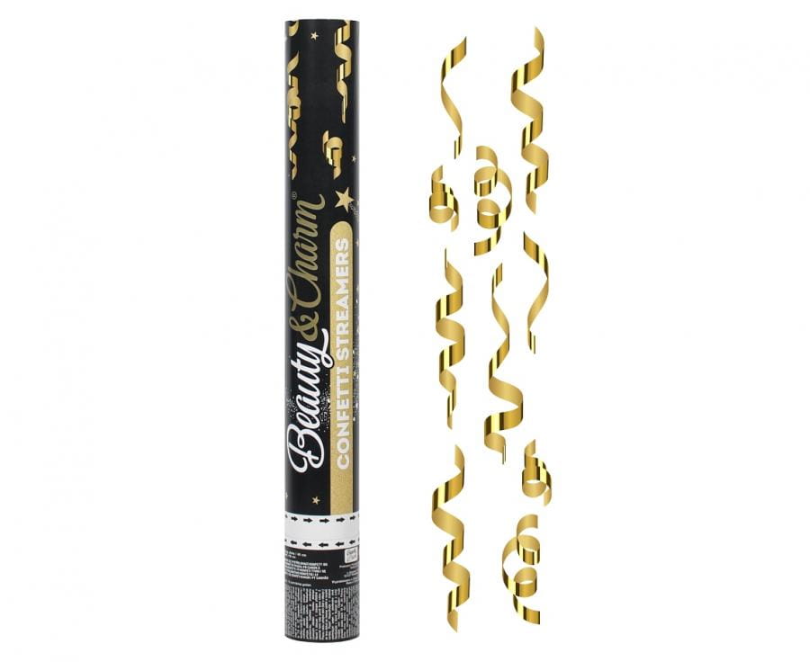Konfetti złote serpentyny w strzelającej tubie z kolekcji premium Beauty&Charm to wyjątkowo wystrzałowa dekoracja na imprezę! Wystarczy przekręcić strzelającą tubę, a ta wystrzeli w powietrze oszałamiający deszcz złotych serpentyn! Strzelające tuby z konfetti rozkręcą każde party. Polecamy je na sylwestra, urodziny i wszędzie tam, gdzie kręci się dobra impreza.