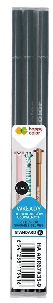 Wkłady do długopisu ścieralnego Happy Color 0,5 mm czarne 3 sztuki wymazywalne