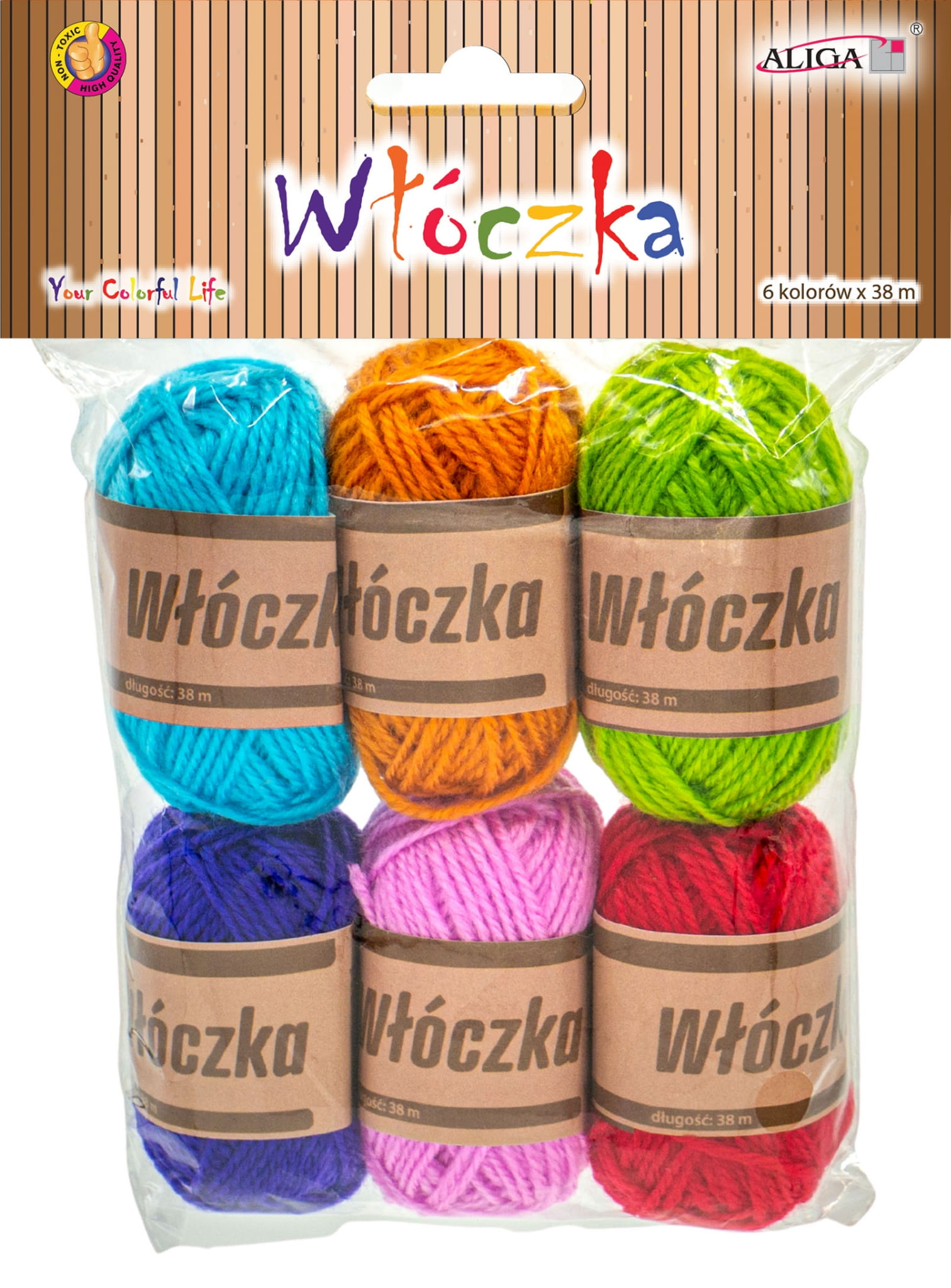 Włóczka zestaw 6 kolorów x 38 m, Aliga