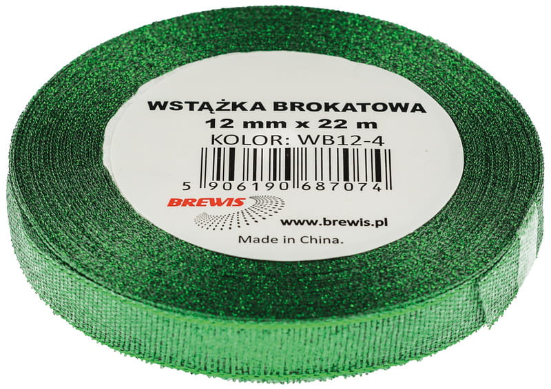 Wstążka brokatowa 12mm zielona WB12-4, Brewis
