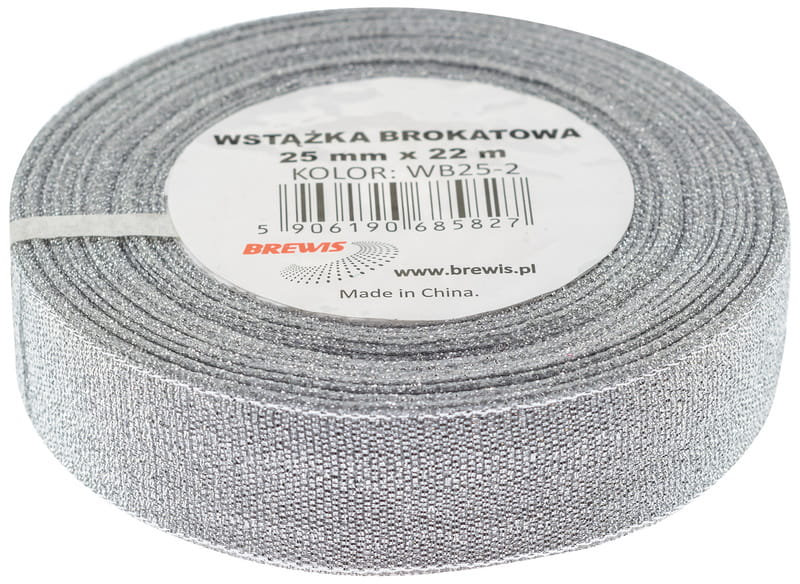 Wstążka brokatowa 25mm srebrna WB25-2, Brewis
