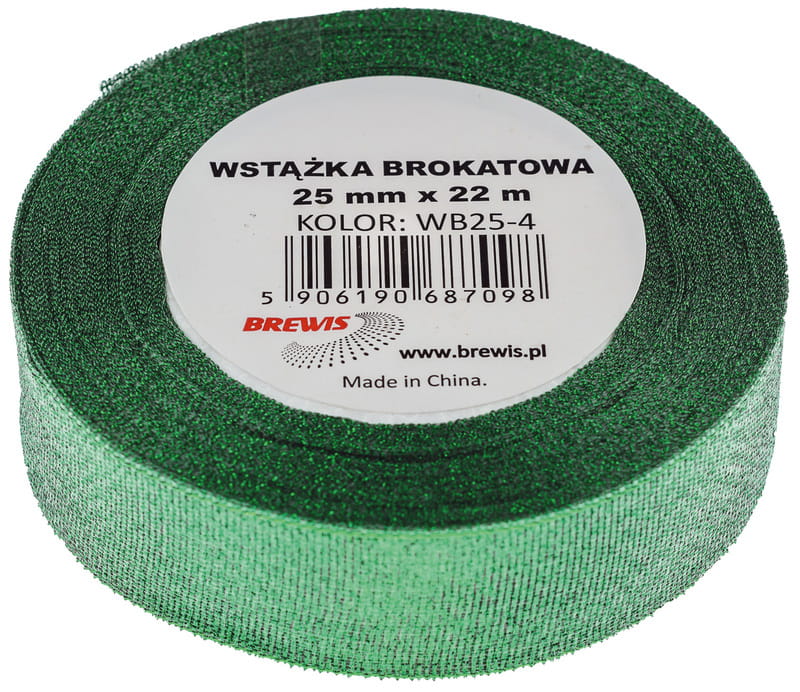 Wstążka brokatowa 25mm zielona WB25-4, Brewis