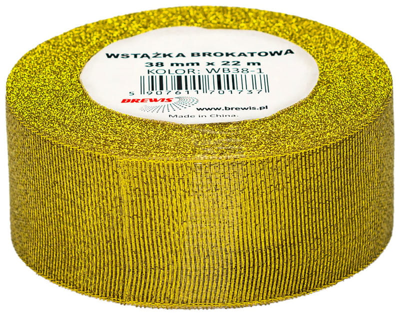 Wstążka brokatowa 38mm/22m złota WB38-1, Brewis