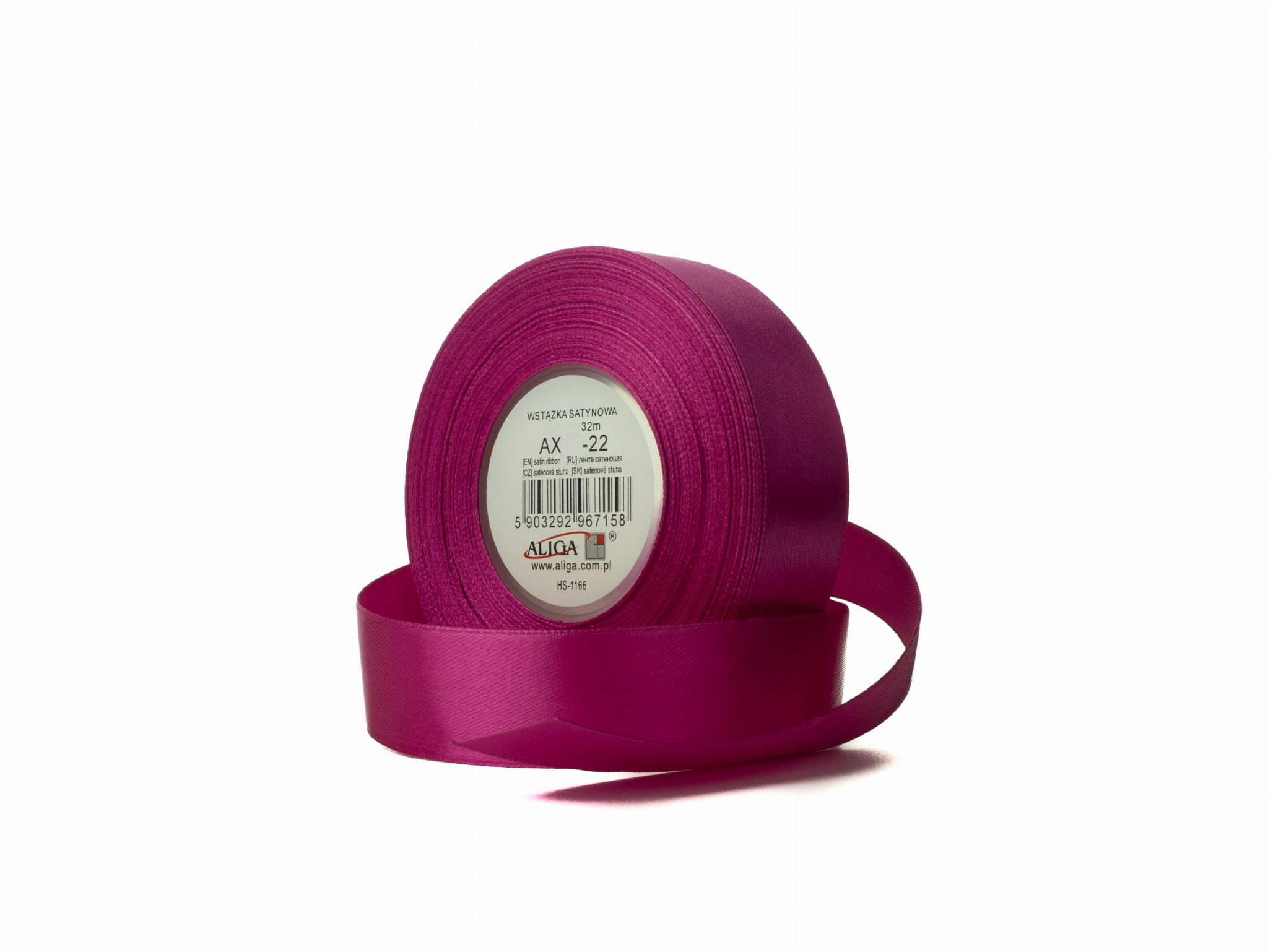 Wstążka satynowa amarantowa 6 mm 32 mb. AX06-22, Aliga