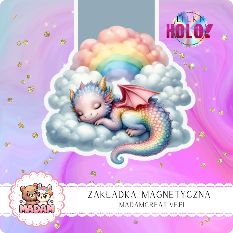 Zakładka Magnetyczna Holograficzna MaDam Smok Smoky – Leniwy jak chmurka, ale gotowy na każdą książkową przygodę!