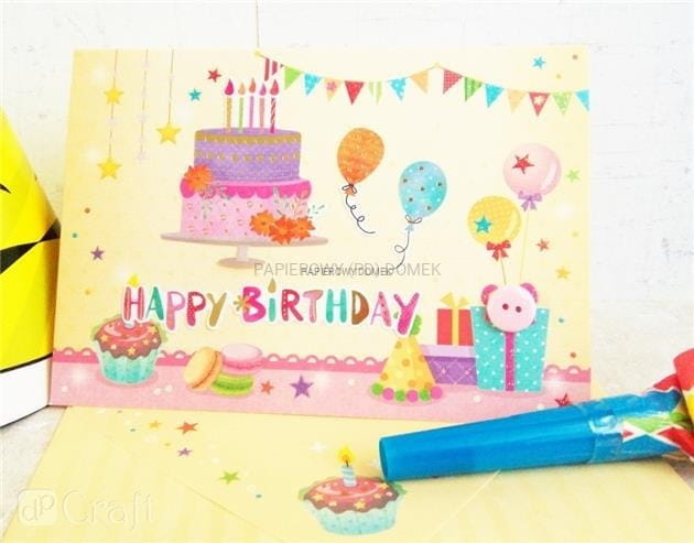 Zestaw fantastycznych kolorowych elementów, dzięki którym wyczarujesz dwie różne kartki urodzinowe lub zaproszenia na kinder party. Aby uzyskać efekt 3D wystarczy połączyć kolorowe papierowe baloniki, babeczki, prezenty czy torty z bazą kartki i gotowe! Co dalej? Pozostaje już tylko przelać życzenia i serdeczności na papier, włożyć do koperty i wysłać do adresata! W zestawie kryją się: - 2 bazy kartek - 2 koperty - 2 arkusze z kolorowymi obrazkami - kostki 3D Pakowanie: 1 szt.