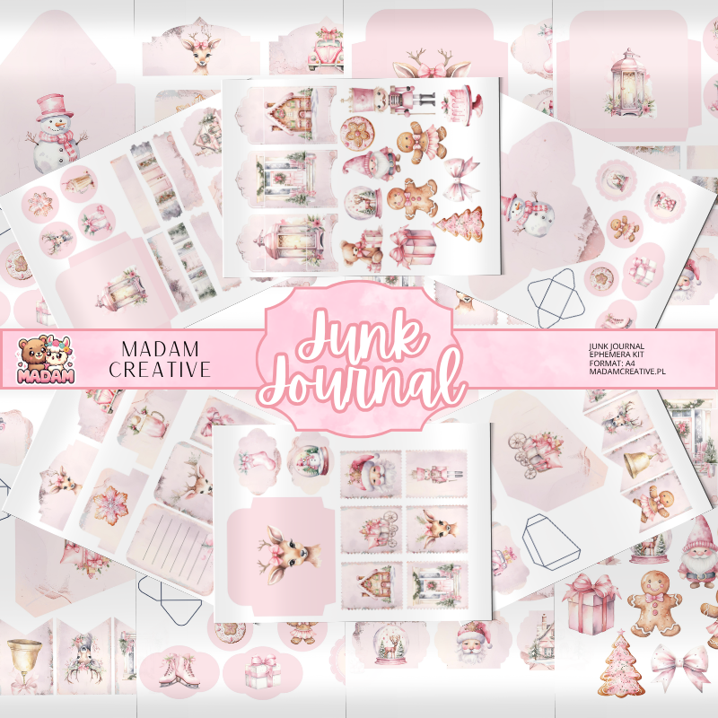 Zestaw Ephemera do Junk Journalingu i Scrapbookingu Pastelowe Różowe Święta - Journal Kit MaDam Creative