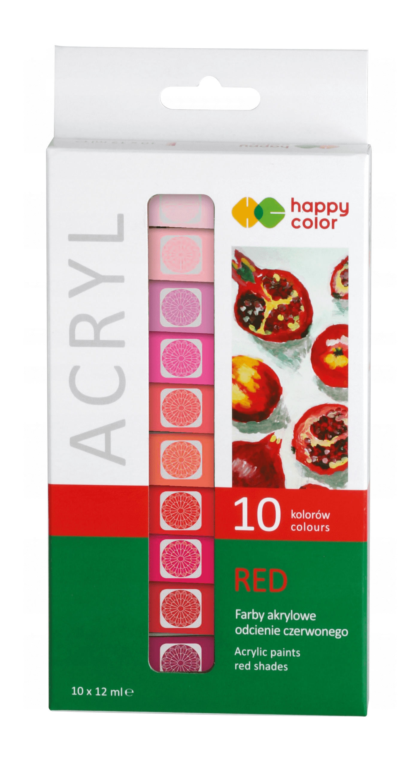 Zestaw Farb akrylowych 10 kolorów x 12 ml odcienie czerwonego Happy Color