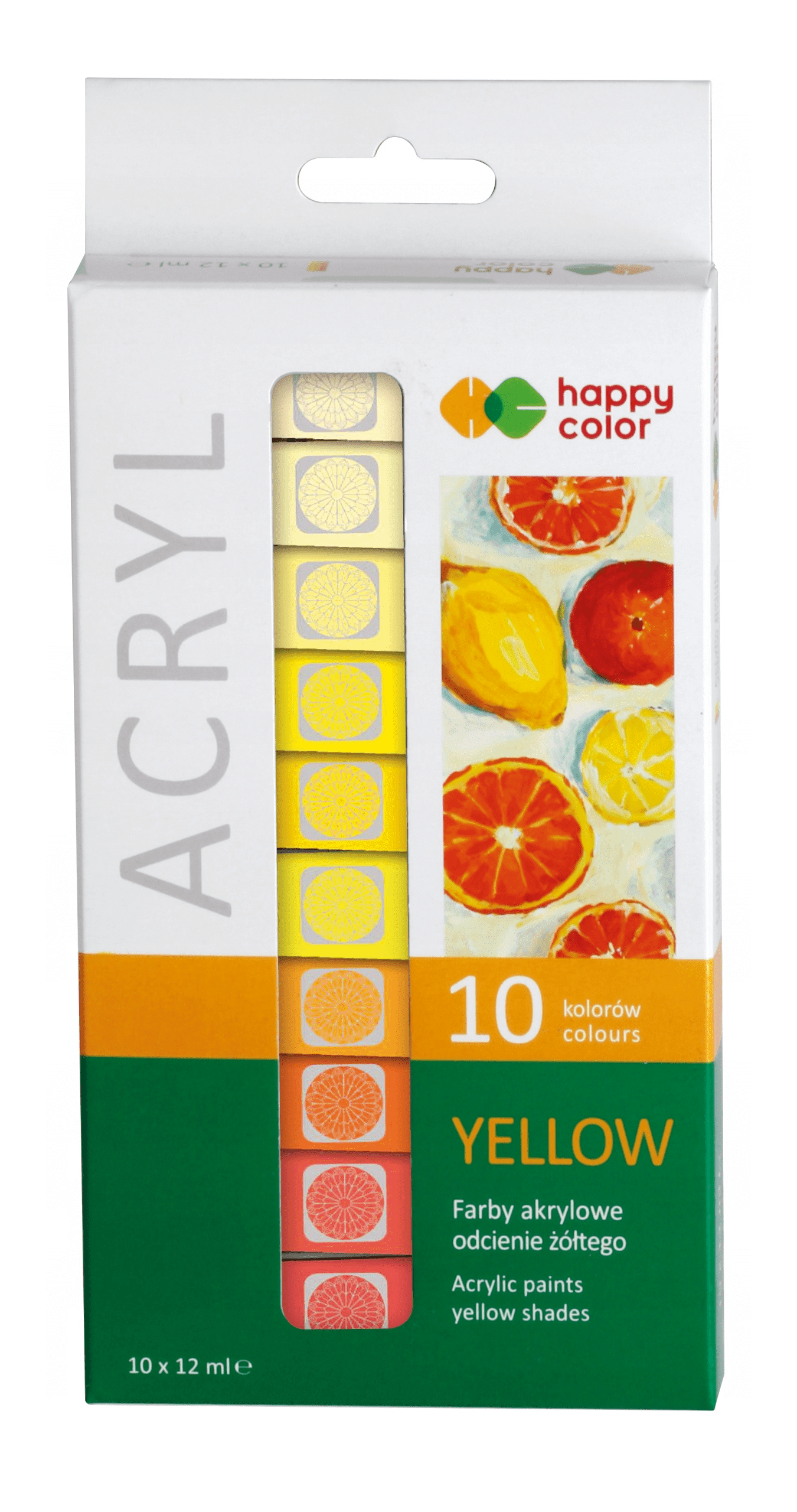 Zestaw Farb akrylowych 10 kolorów x 12 ml odcienie żółtego Happy Color