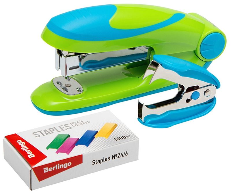 Zestaw Fuze zszywacz zielony 24/6,26/6, rozszywacz, zszywki kolorowe , Berlingo