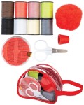 Zestaw zawiera: igły, nici, nożyczki, naparstek, poduszkę do igieł.