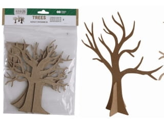 - Zestaw kształtów tekturowych do złożenia przestrzennych drzew.