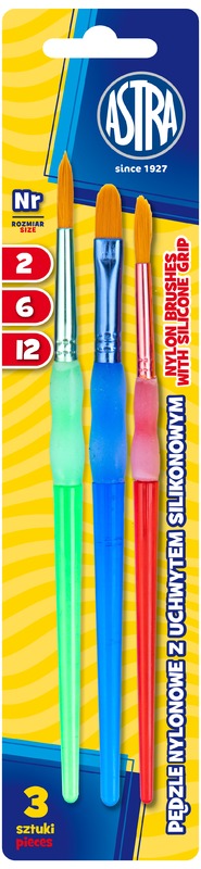 Zestaw pędzli nylonowych uchwyt silikonowy 3szt., Astra