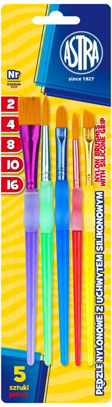 Zestaw pędzli nylonowych uchwyt silikonowy 5 sztuk, Astra