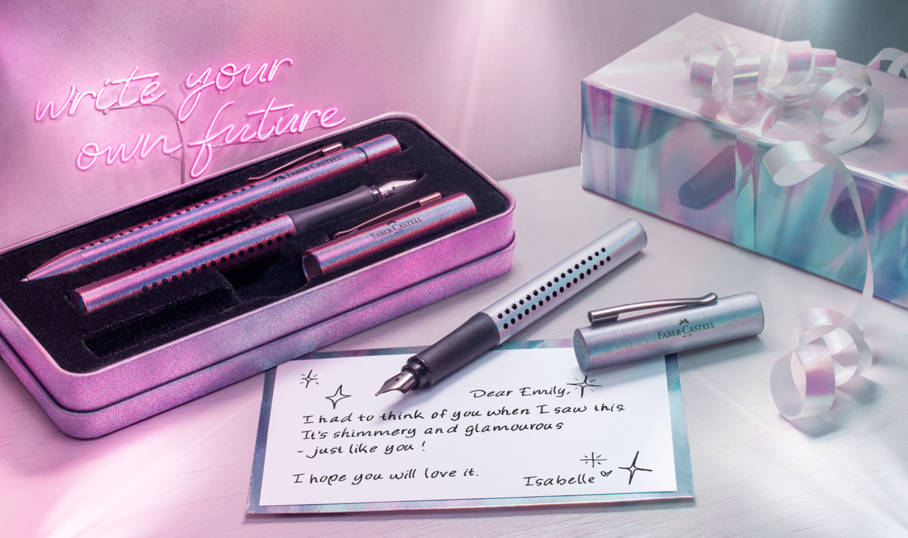Zestaw prezentowy Faber-Castell pióro + długopis Glam Pearl Grip w metalowym pudełku