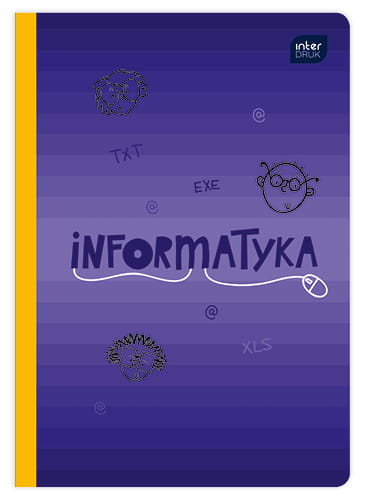 Zeszyt szkolny w formacie A5 do Informatyki. Okładka z zaokrąglonymi rogami. Zeszyty tematyczne z wyraźnym zaznaczeniem, nazwą przedmiotu oraz grafiką nawiązującą do danego przedmiotu. Zaprojektowane zgodnie z aktualnymi trendami w designie i modzie tak, aby sprostać wysokim oczekiwaniom każdego ucznia i uprzyjemnić naukę. Wysokiej jakości okładka zabezpieczona lakierem ochroni wszystkie ważne notatki.