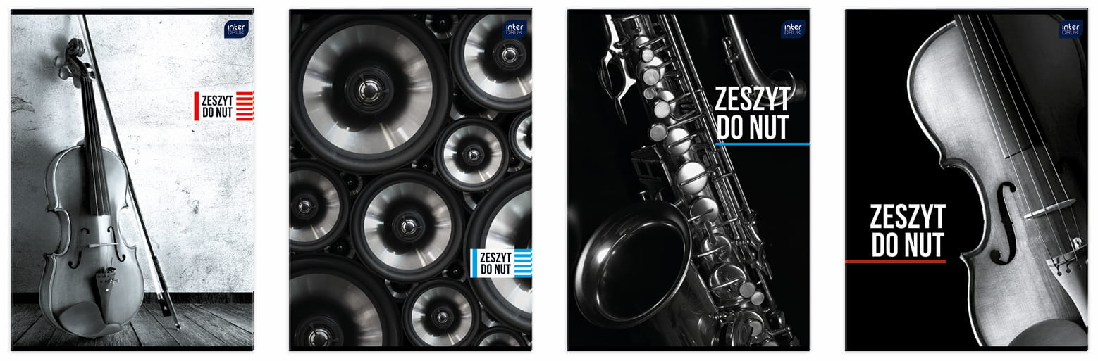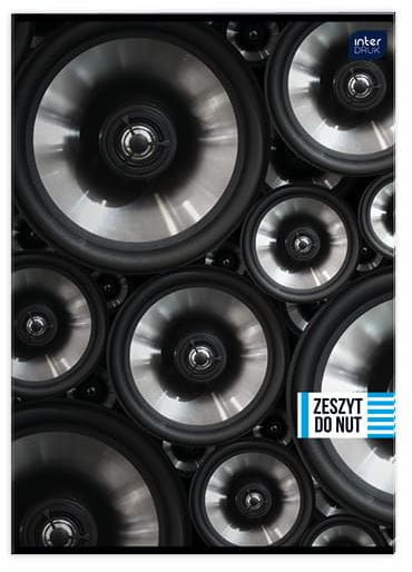 Zeszyt do muzyki przeznaczony do zapisywania nut z tradycyjną pięciolinią. Układ pionowy z kartkami łączonymi zszywkami. Okładka zabezpieczona lakierem UV z modnymi, muzycznymi wzorami.