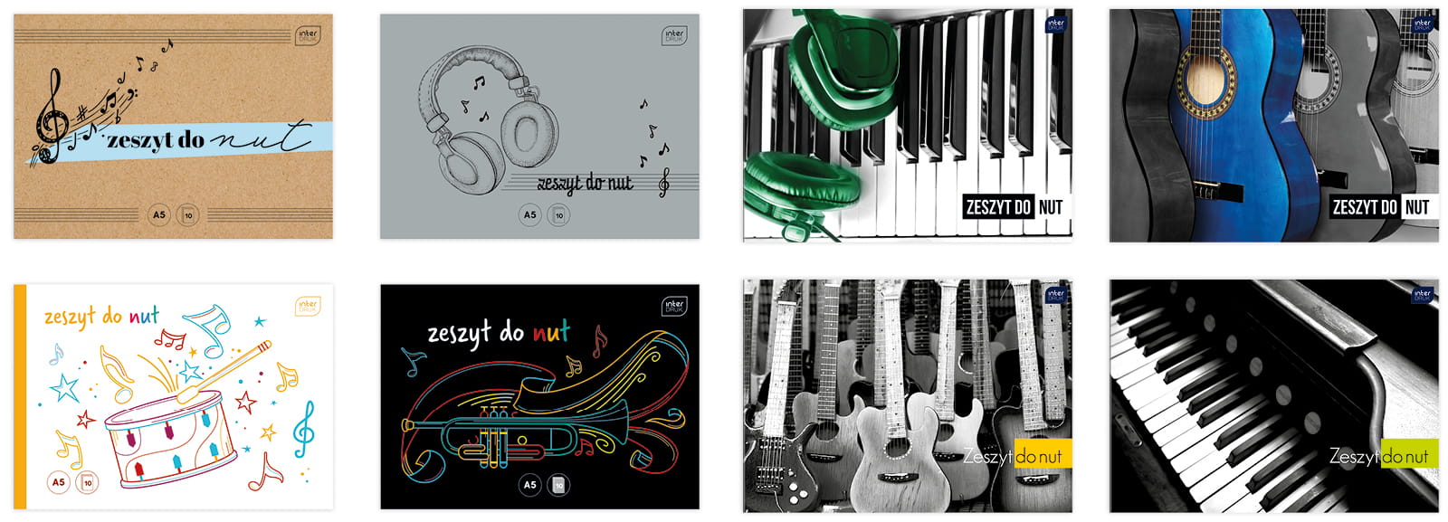Zeszyt do muzyki A5 16 kartek Pięciolinia do nut MIX OKŁADEK, Interdruk